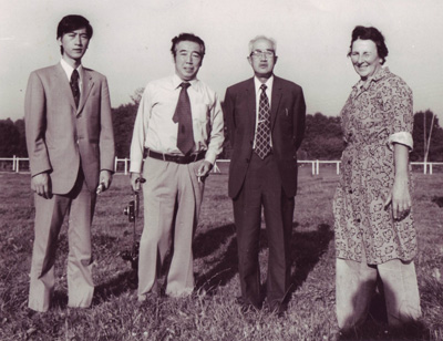 La délégation japonaise venue acheter Tasos, ici avec Mme Emile Lestorte.