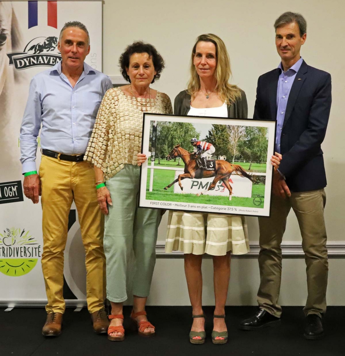 Meilleur Anglo-Arabe de 3 ans à 37.5% en plat en 2024 : First Color (Frisson du Pecos), élevée par Nadine et Marc Minvielle, courant sous les couleurs de Mme Michel Thomas, et entraînée par Xavier Thomas-Demeaulte