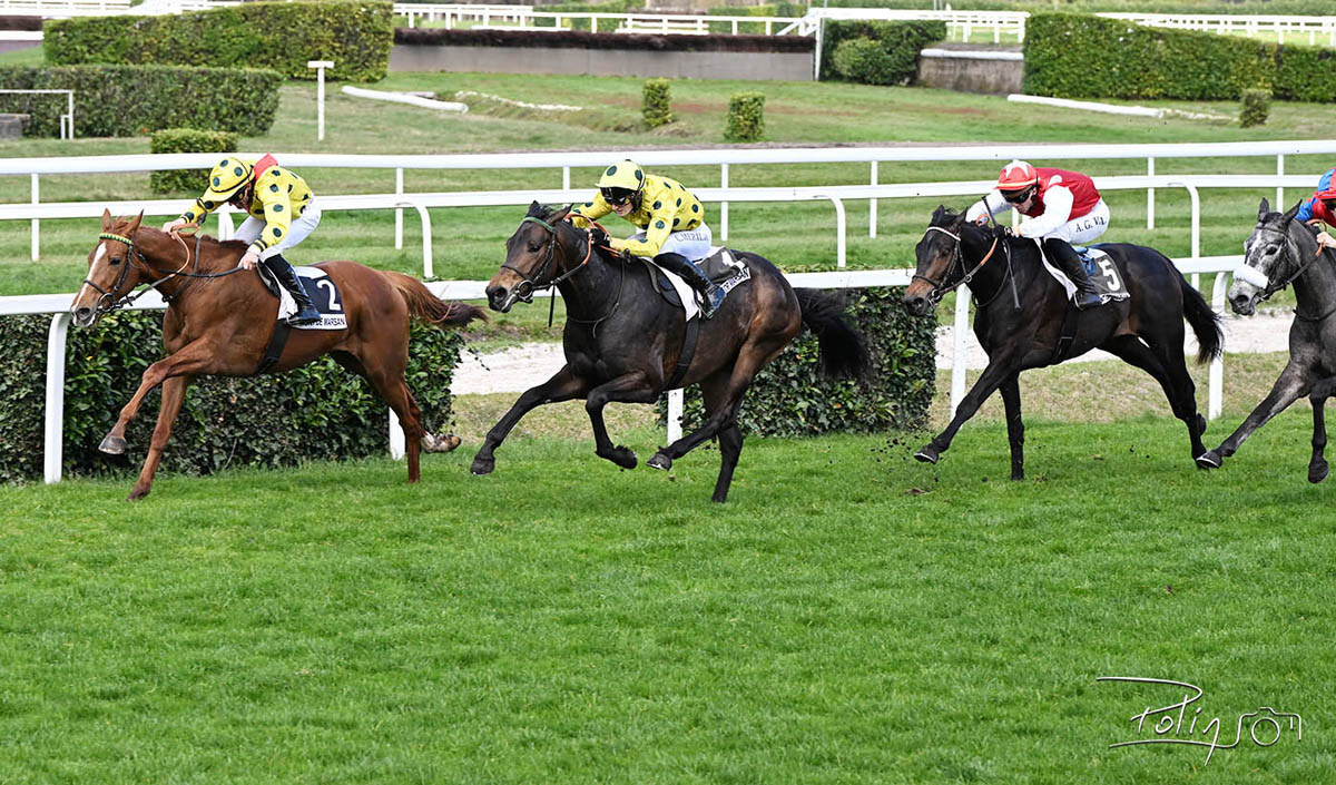 Chez les 12.5% du Prix Shrek (Prix de Valmy, pour les 12,5%), Didier Guillemin a donc trusté les 3 premières places du podium avec Sonolina, dont le père Frisson du Pécos est aussi un élève de Patrick Davezac, qui devance Sherwood (Jeu St Eloi) et Chamawave, la toute 1e partante de son père Chamako. La gagnante Sonolina, élevée par André Ducos, est donc issue du croisement entre l'anglo-arabe à 57% Frisson du Pécos et la jument pur-sang Atelina, restée inédite mais soeur d'Argentique (Prix Robert de Clermont-Tonnerre, Gr.3), donc né de la grande famille de Balko, Oculi, Kapeloi, Piraya, Tyko, Highway to Hell, etc...Cette pouliche porte la casaque d'Eric Laborde, associé à Bruno Thierry et le Haras du Bosquet de Véronique Laborde.